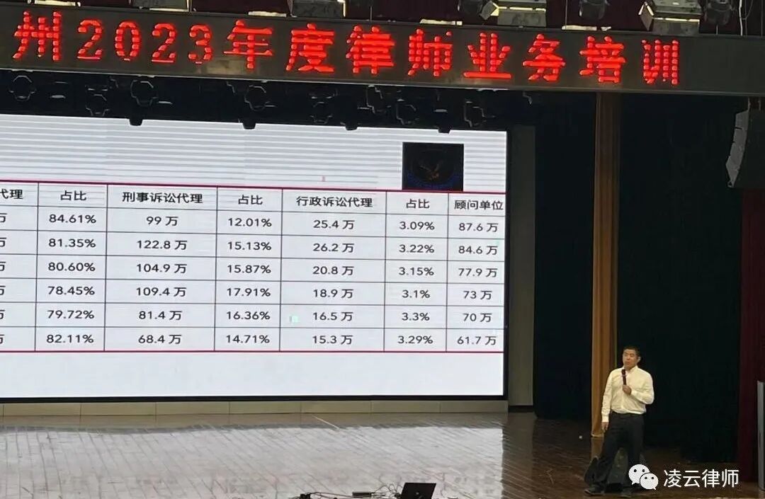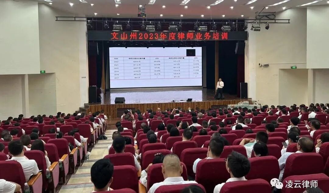2023年8月6日下午,凌云律师事务所合伙人会议主席李春光律师应邀为文山州全州律师授课,本次讲座由文山州律师协会举办,近400名律师参加讲座。李春光律师以律师行业发展趋势及业绩增长路径为主题,结合国家发展规划中高质量建设社会主义现代化强国的背景,指出律师行业的发展机遇,并就律师如何突破自己、自我成长、提升业务量提供了方法和提出了建议。与会律师认为,此次讲座具有很强的针对性和实用性,内涵丰富、语言精炼,对律师业务技能提升极具借鉴意义,纷纷对本次讲座表示高度肯定。【免责声明】本文观点仅作为交流讨论目的,不可视为云南凌云律师事务所正式法律意见或建议。如您有任何法律问题或需要法律服务,欢迎与本所联系。云南凌云律师事务所对转载、分享的内容、陈述、观点保持中立,不对图文包含内容的真实可靠性或完整性提供任何明示或暗示的保证,图文均仅供读者参考!【版权说明】图文仅供交流学习,禁止用于商业用途,版权归原创者所有,若来源标注错误或侵犯到您的权益,烦请告知,我们将立即删除。快手 优酷 腾讯 喜马拉雅 微博 | 凌云律师事务所
