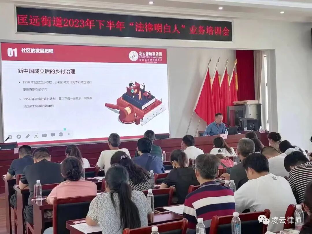 2023年8月11日,云南凌云律师事务所王声正律师应邀为宜良县匡远街道办开展普法宣传讲座。