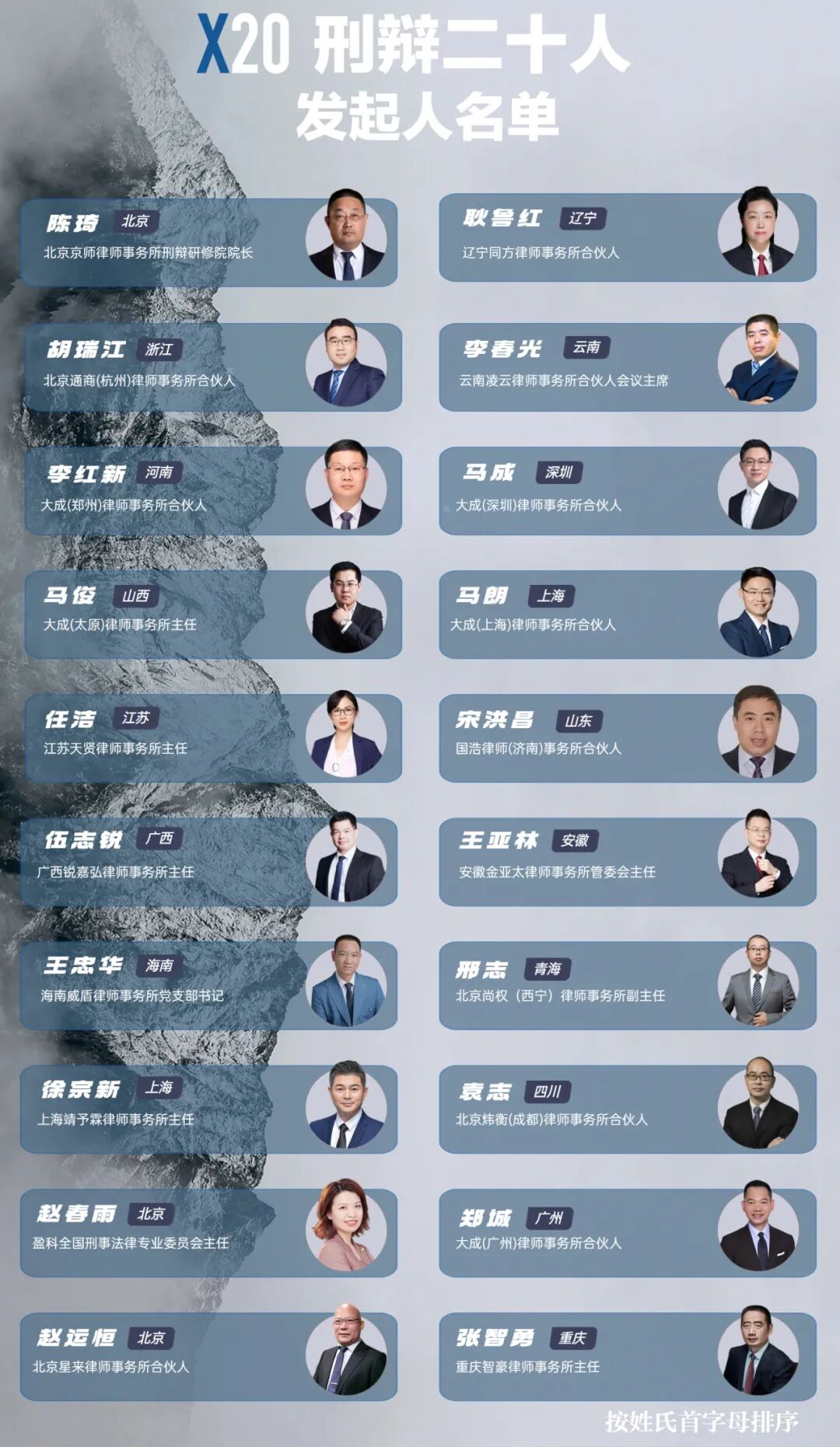 “X20刑辩二十人”由20名来自全国各地刑事辩护领域一线律师发起,无偿搭建刑辩交流平台,对法律理论与刑辩实务精研覃思。